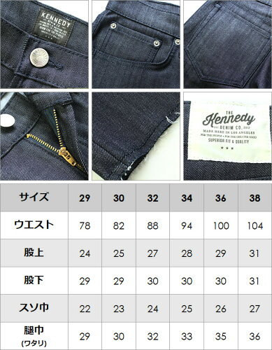 【素材】コットン98%スパンデックス2% 【着用データ】身長171cm/体重68kgのモデルがウエスト32を着用しました LA生まれのNEWブランドKennedy DENIM(ケネディーデニム)。