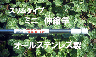 オールステンレス SUS301ミニ伸縮竿 量販品にある 430系オールステンレスとは違い 錆に強い!軽い! 浴室はもちろん、ホスクリーン等、室内外問わず使用出来ます。